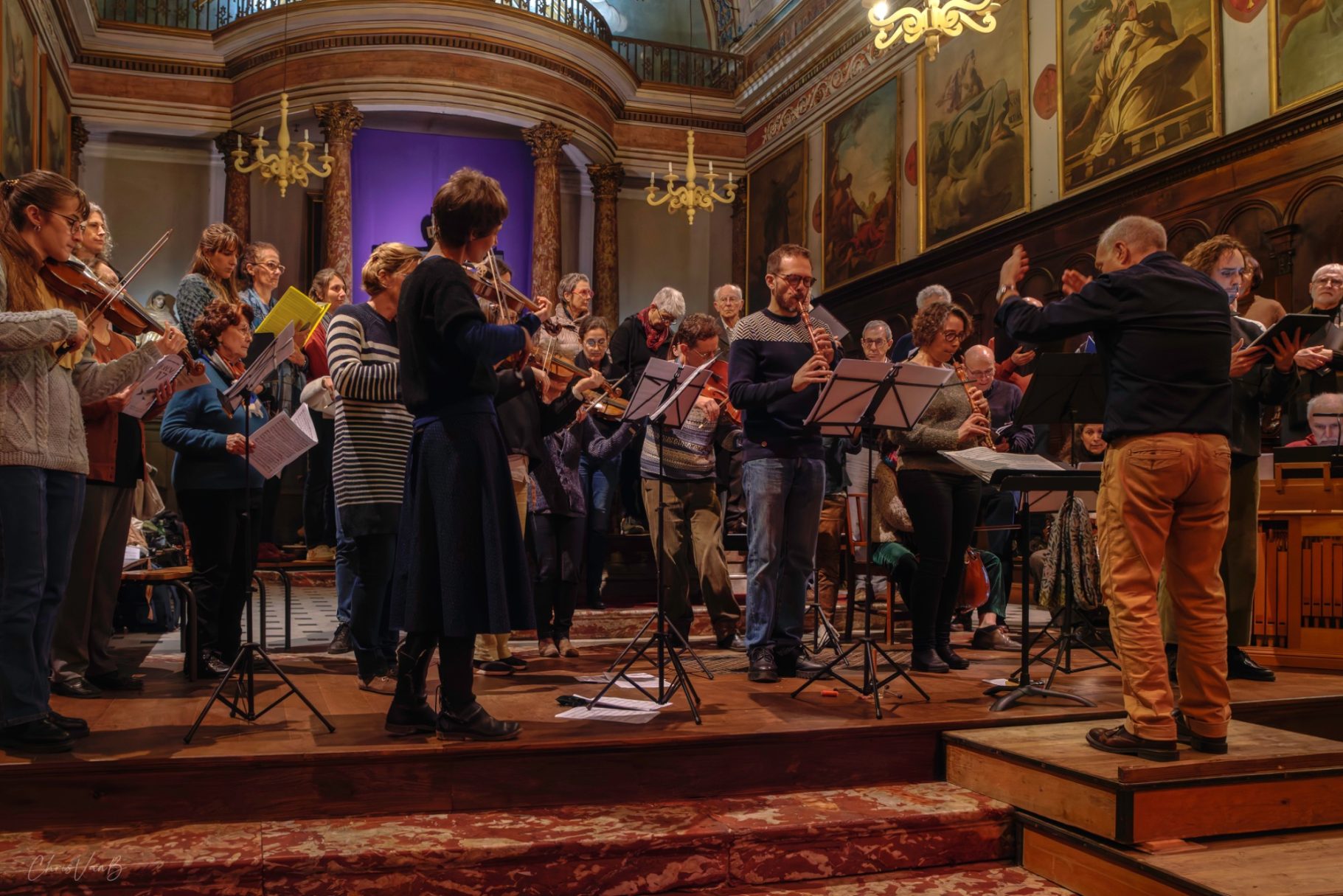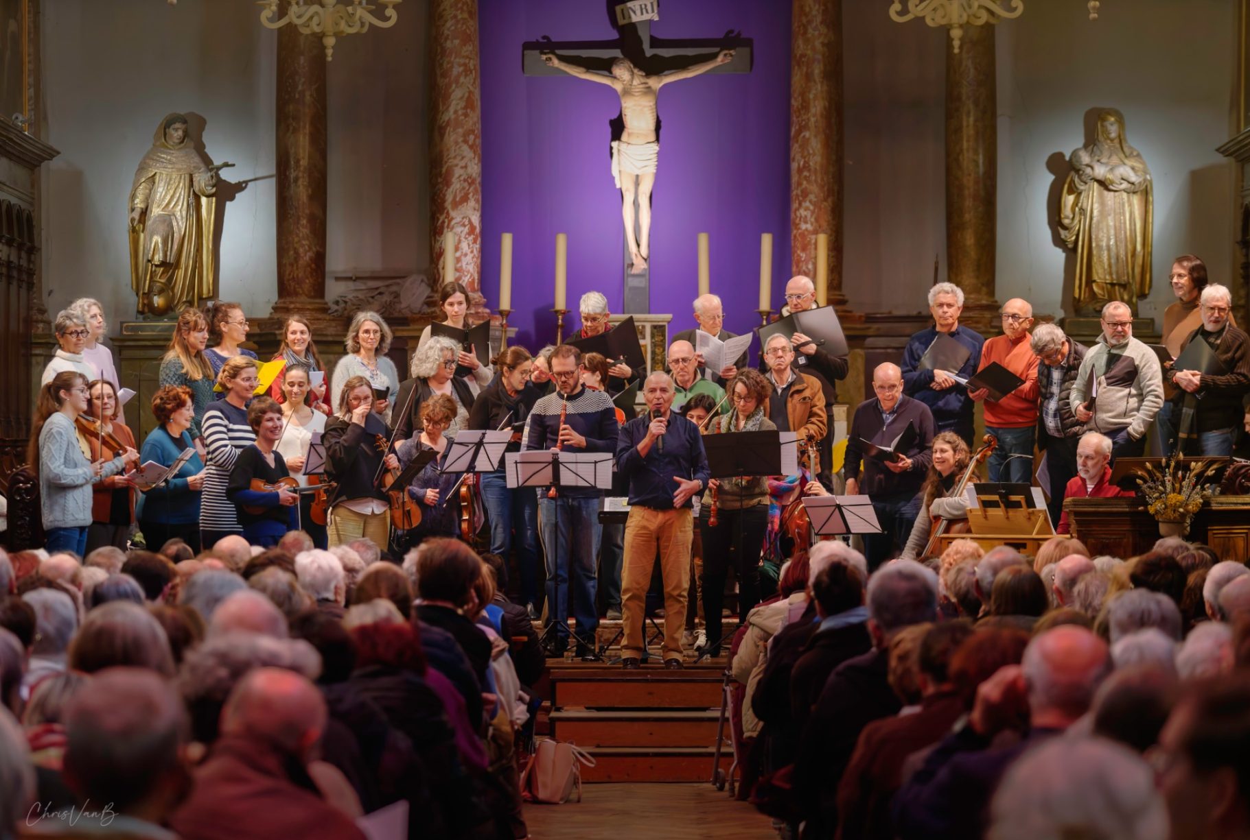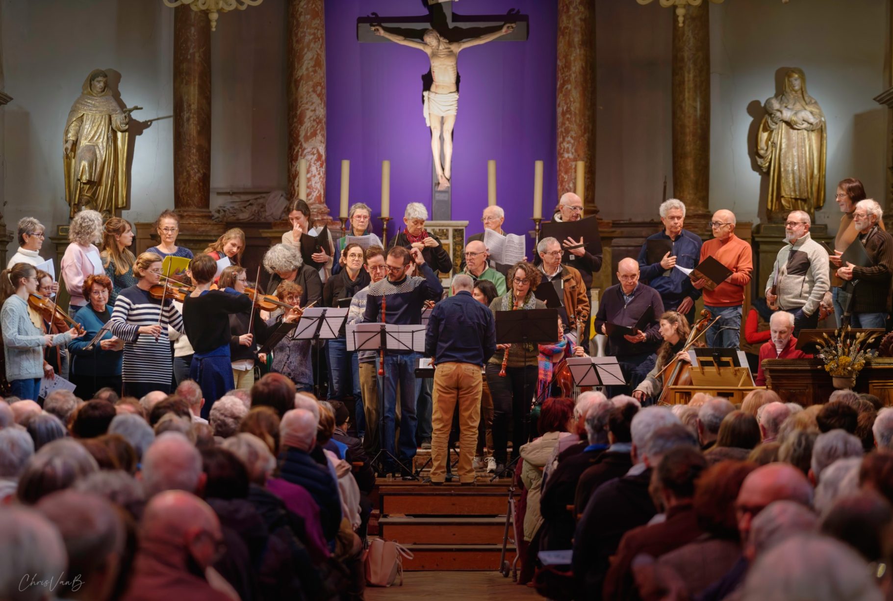Public et musiciens bien au fait du contexte, des différents mouvements de la cantate, des "points chauds" de l'oeuvre, il est temps pour l'interprétation globale de la partition. Chacun reprend sa place et se mobilise devant un public conquis d'avance.