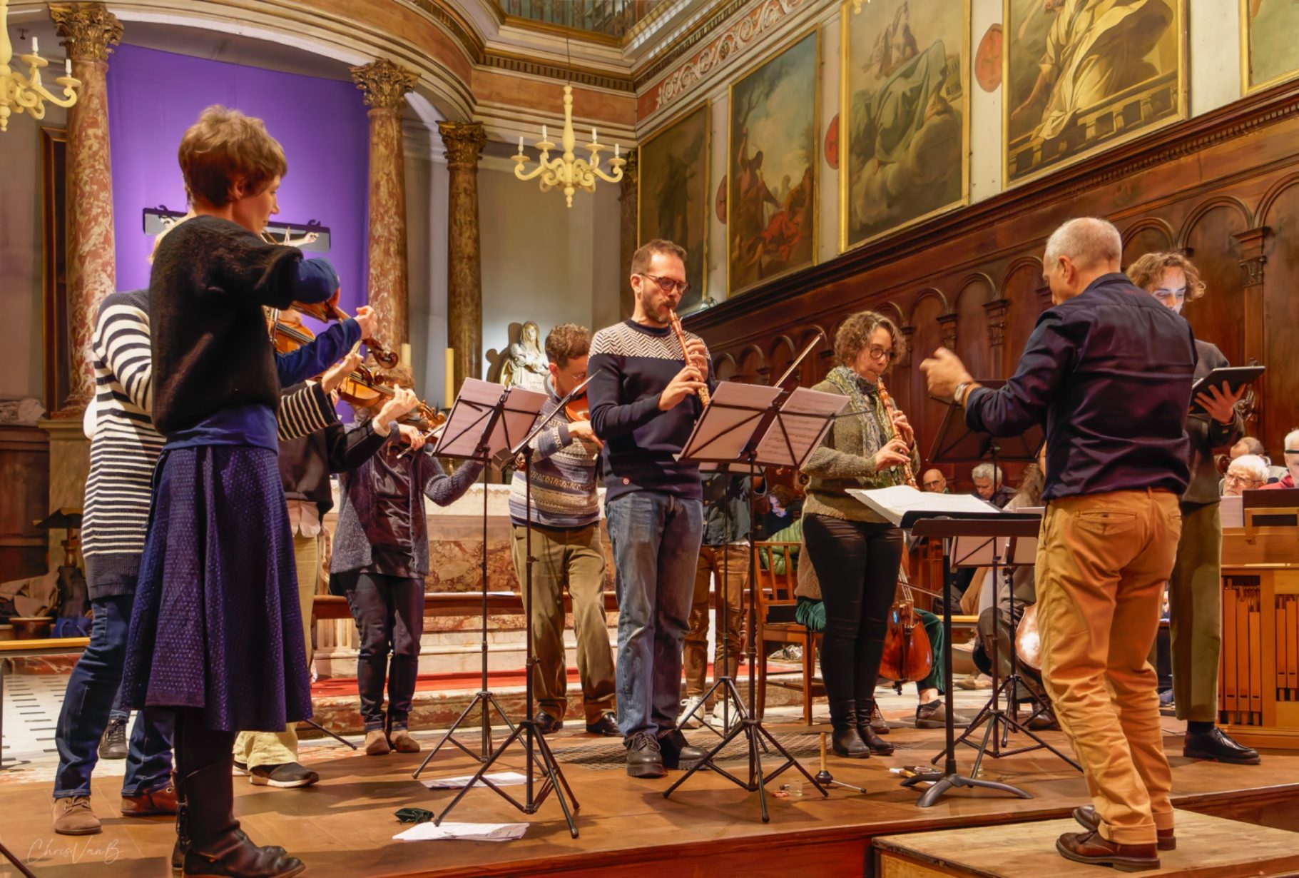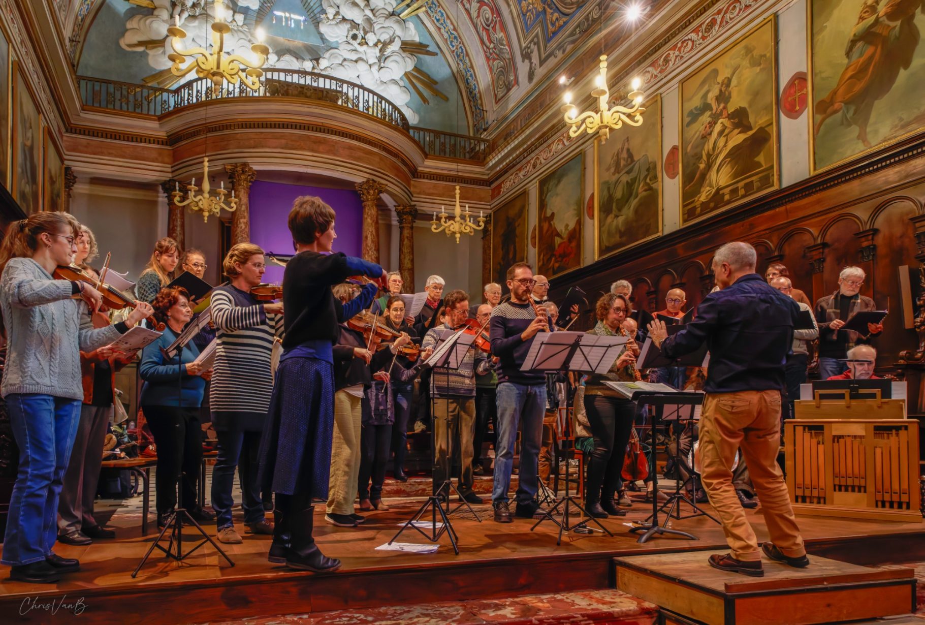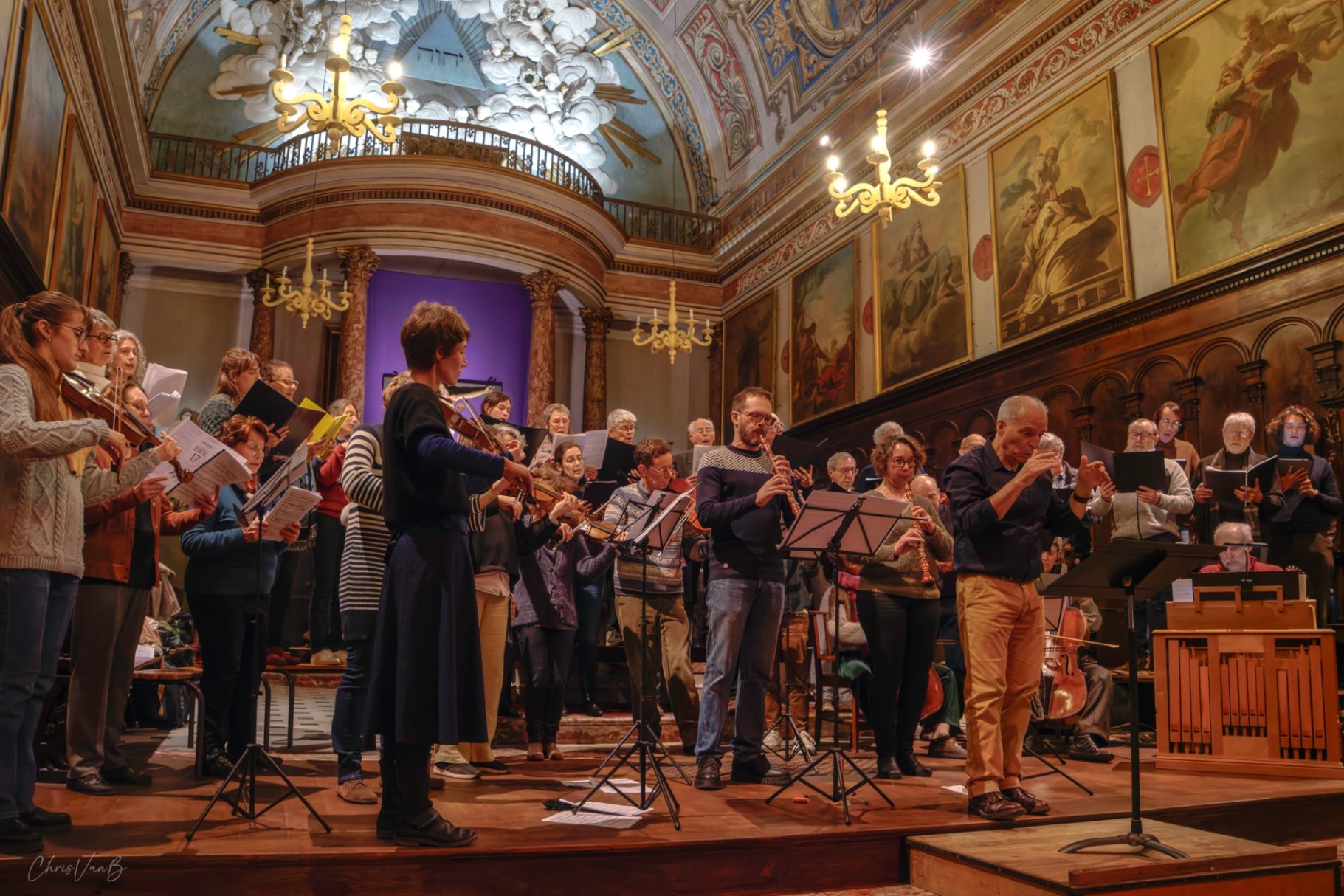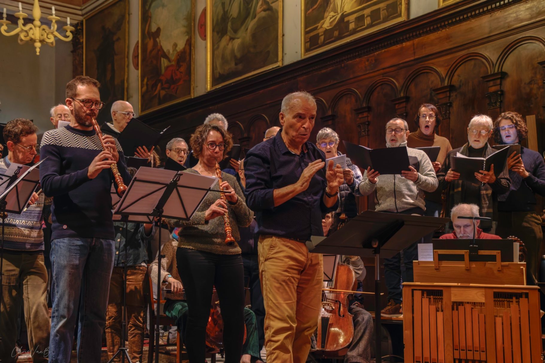 Public et musiciens bien au fait du contexte, des différents mouvements de la cantate, des "points chauds" de l'oeuvre, il est temps pour l'interprétation globale de la partition. Chacun reprend sa place et se mobilise devant un public conquis d'avance.