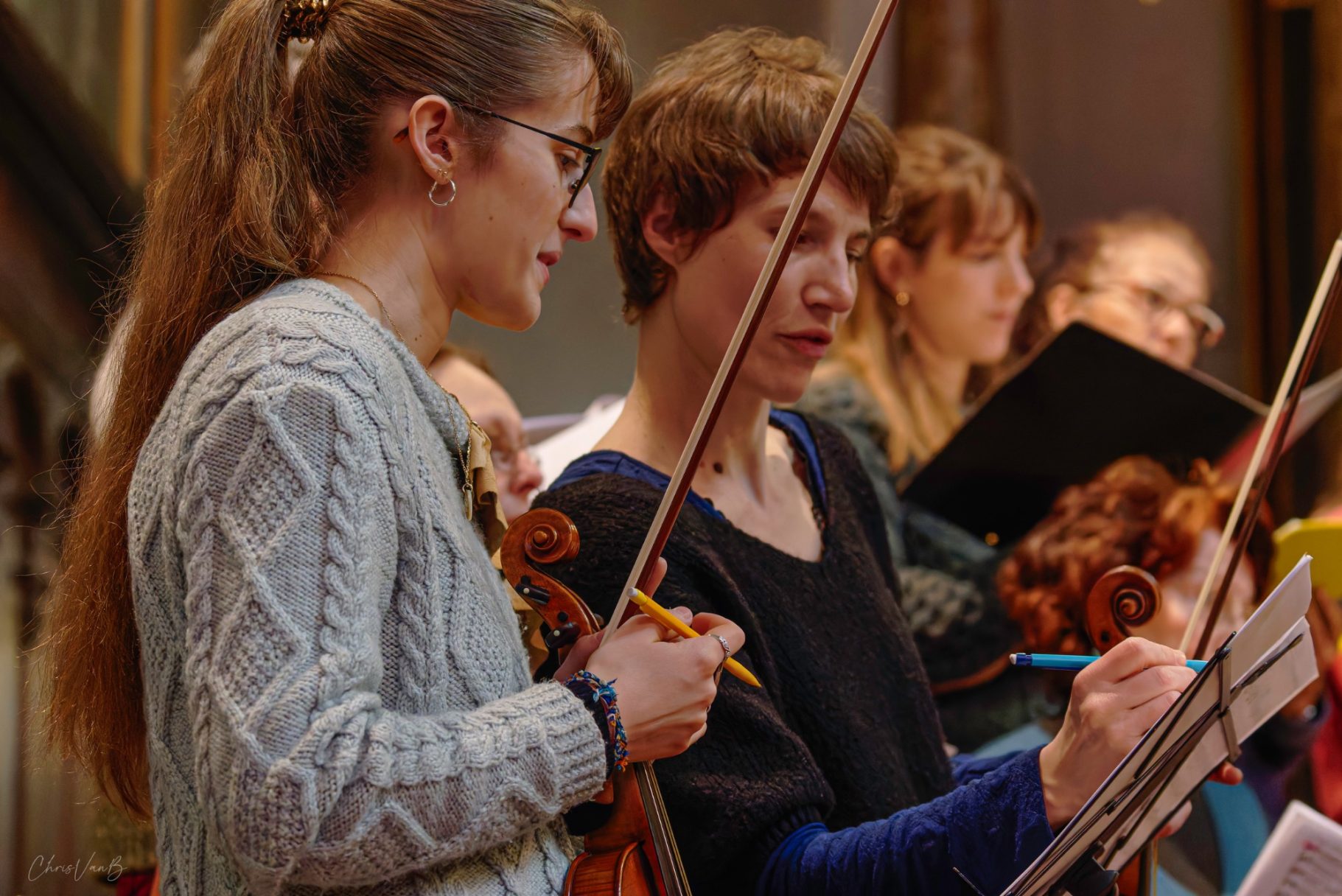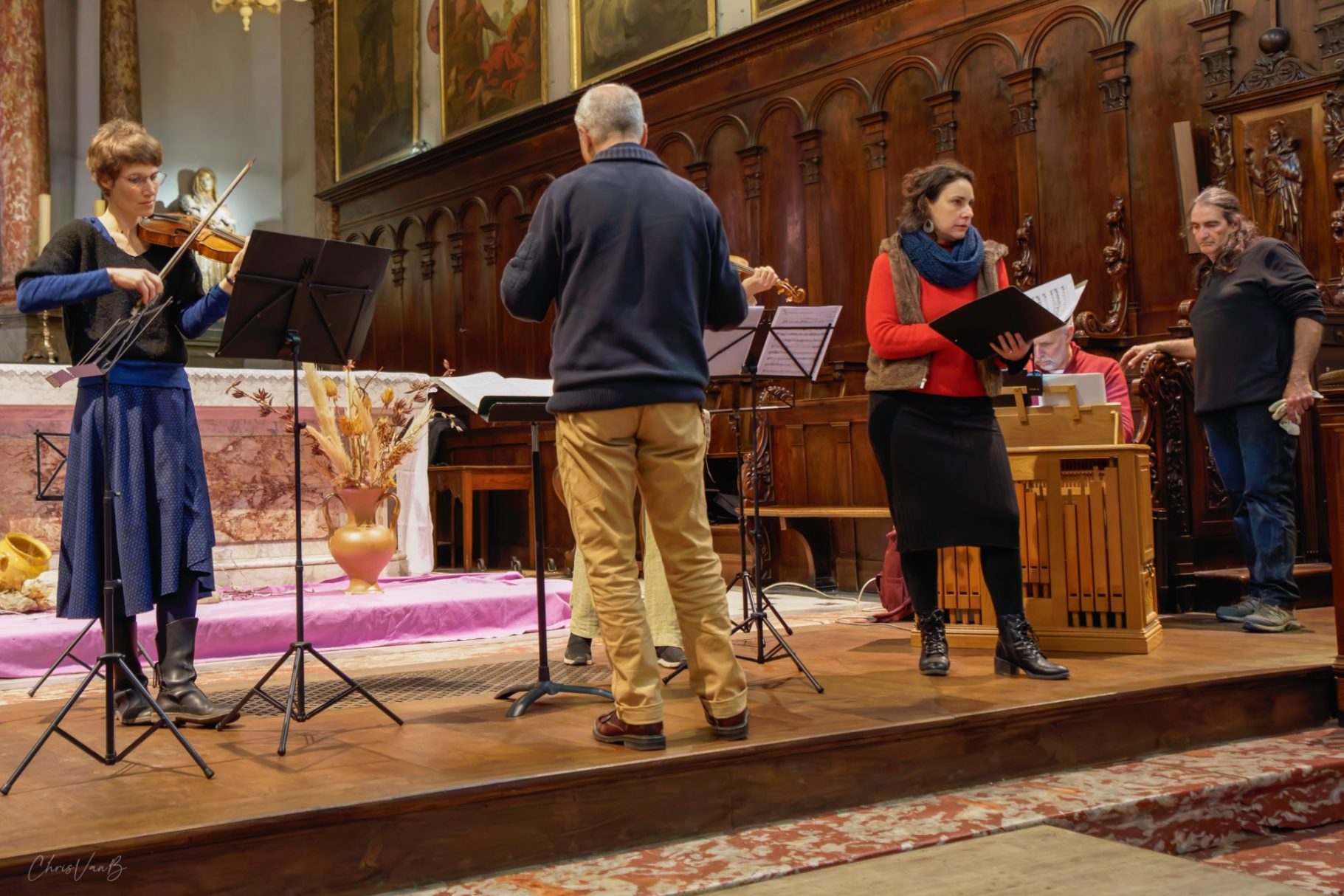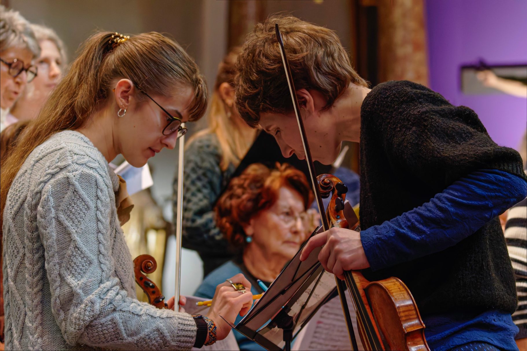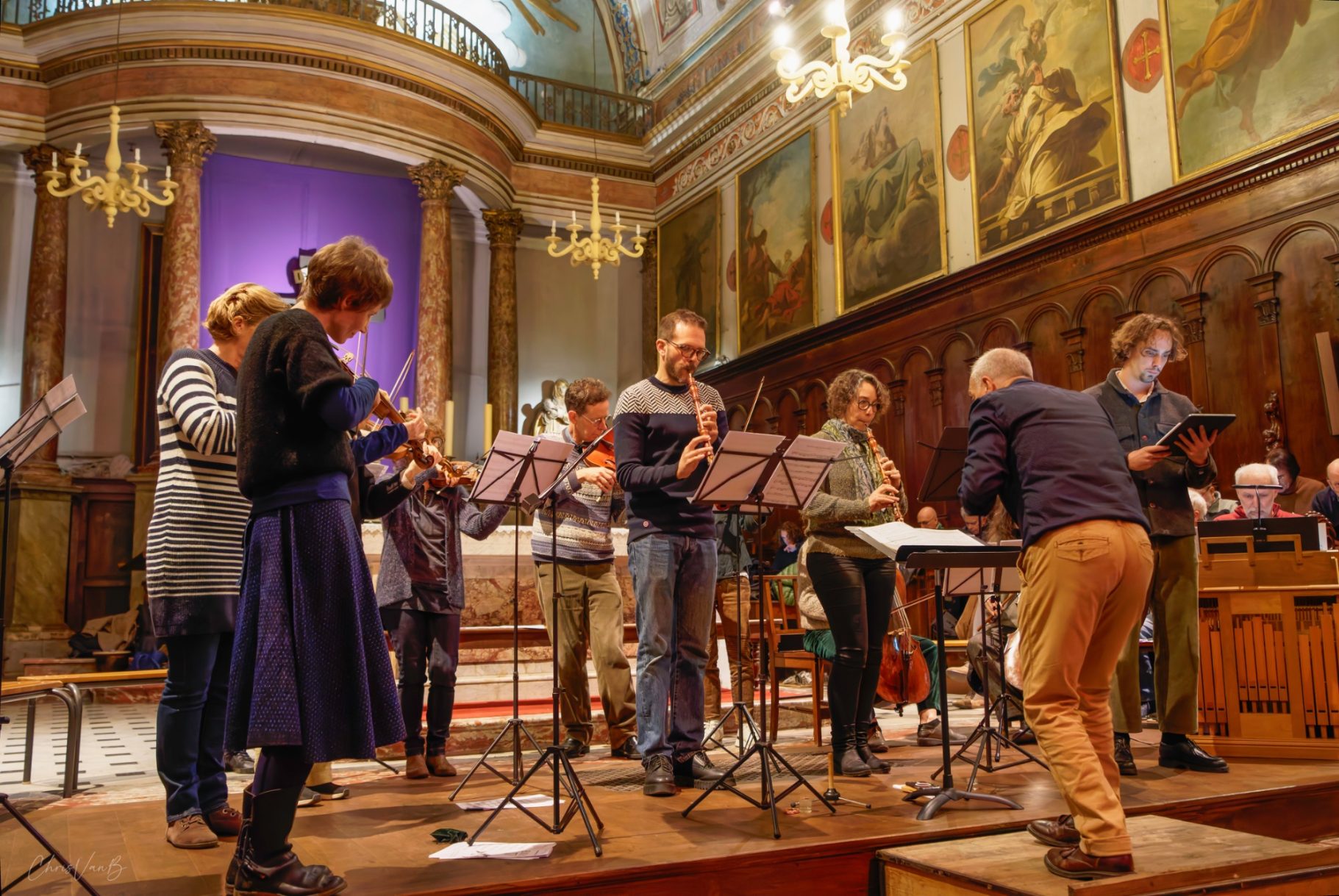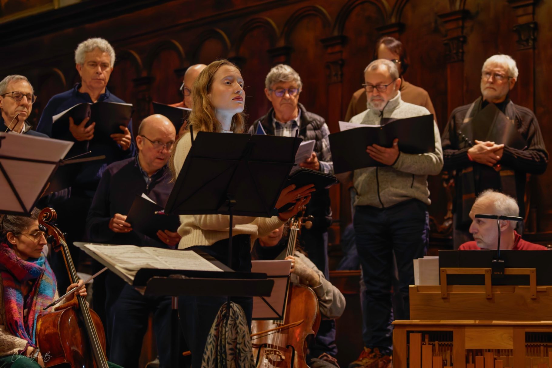 Les instrumentistes, solistes et choristes se retrouvent pour une répétition ouverte au public avant d’interpréter la cantate. Leur travail sur la partition n’a jusqu’alors été qu’individuel.