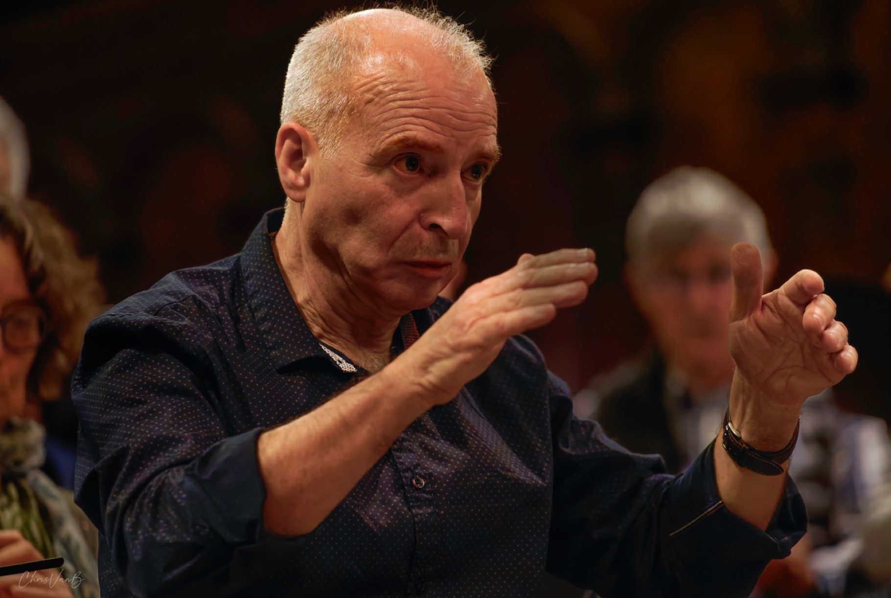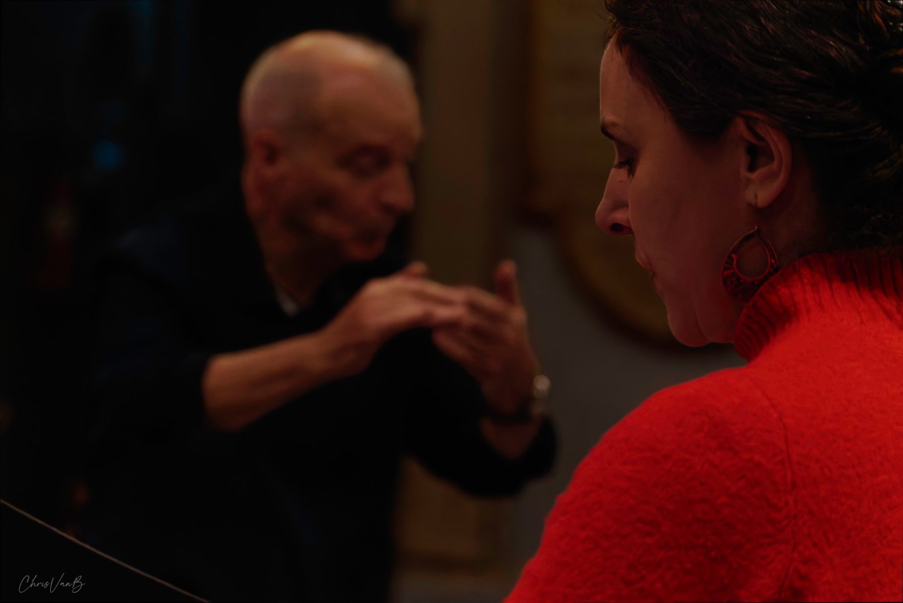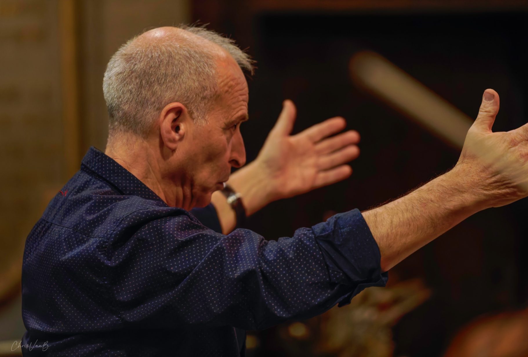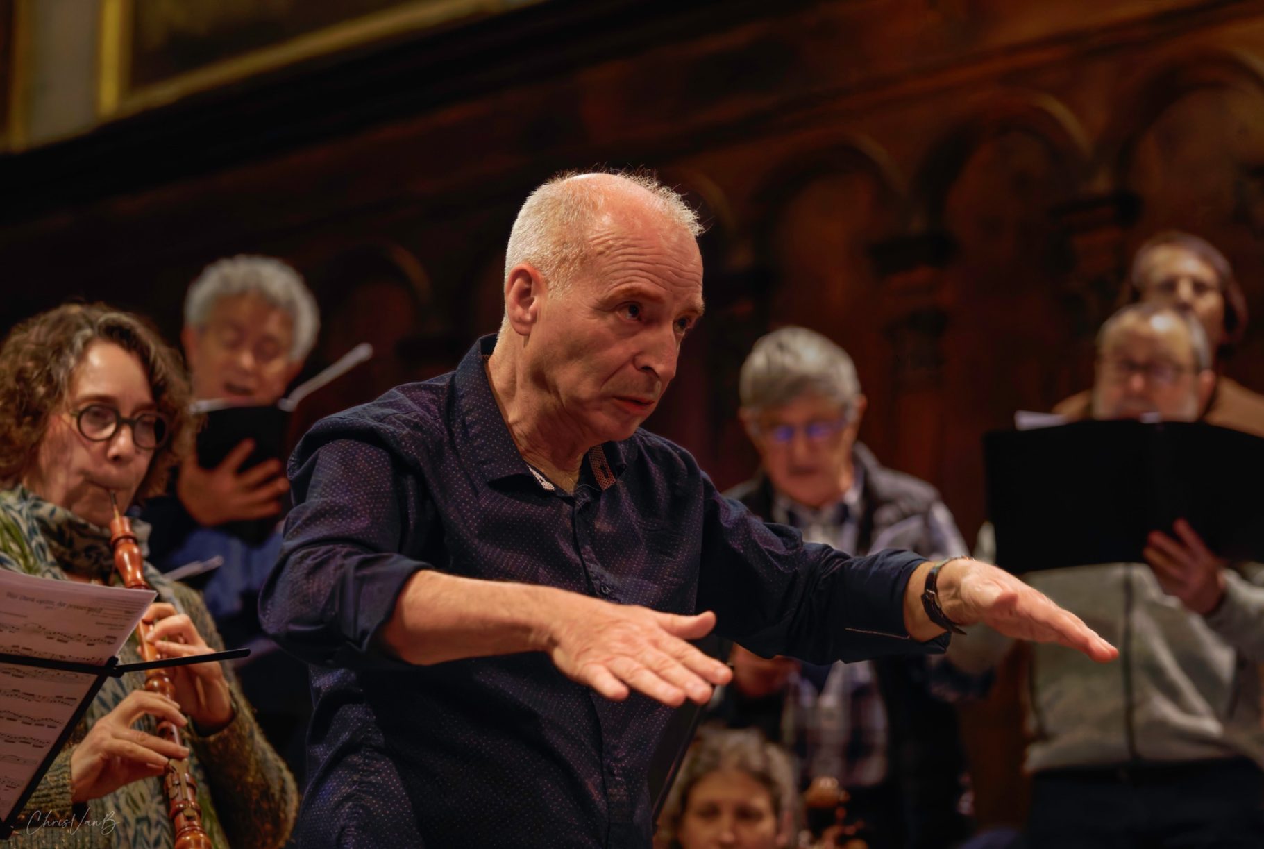 En même temps qu'il explique au public les fondamentaux de la cantate, Michel Brun travaille avec chaque groupe de musiciens : les cordes, les vents, les coeurs... afin de mesurer toutes les subtilités de la partition et en interpréter la quintessence.