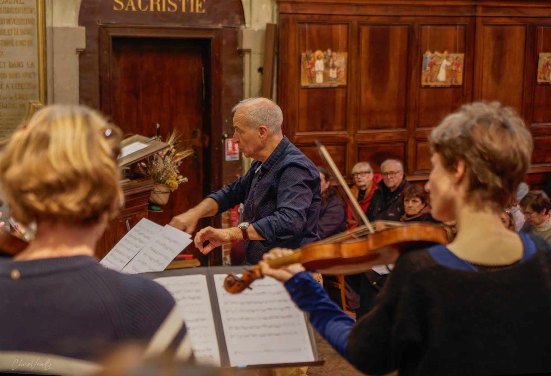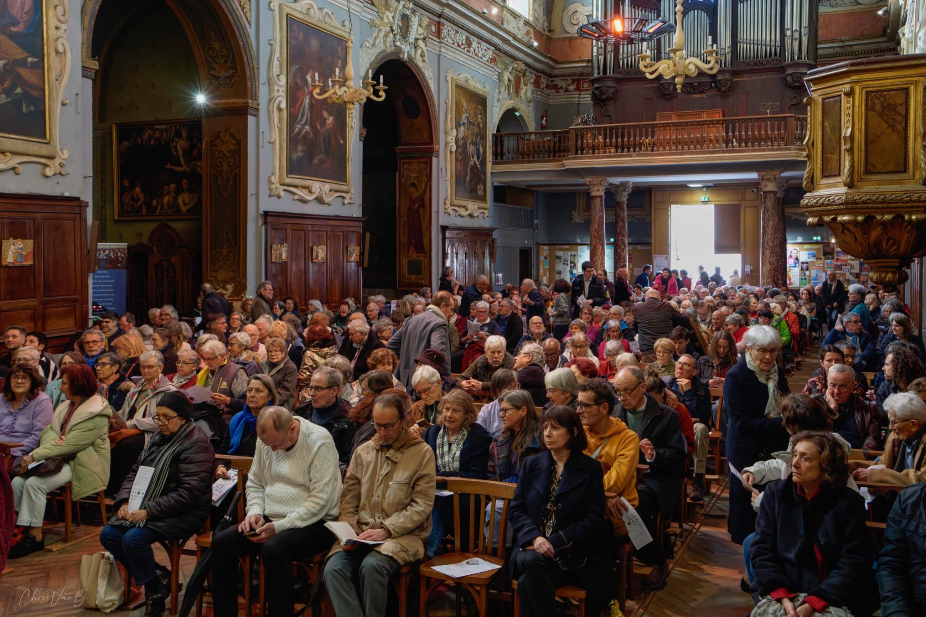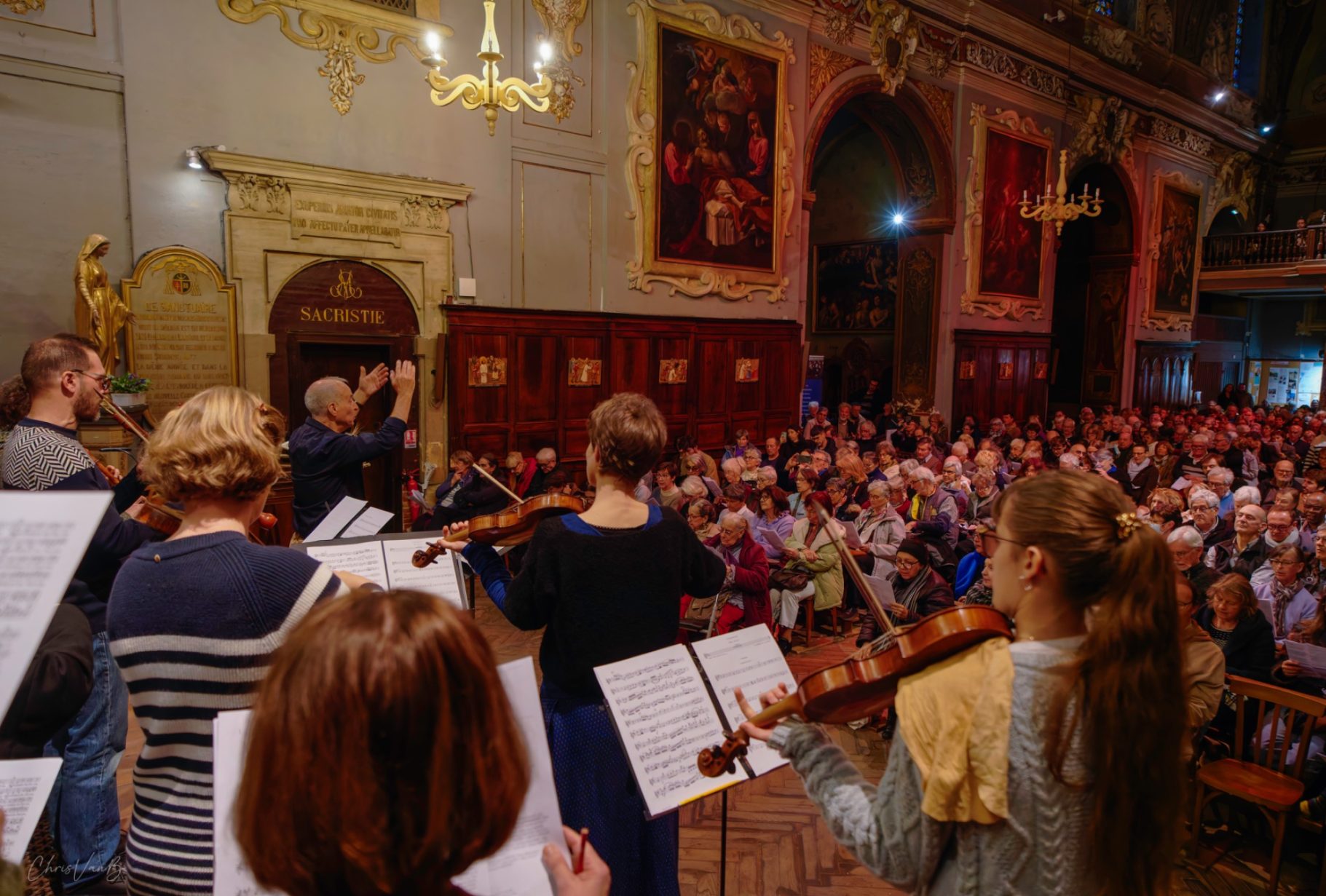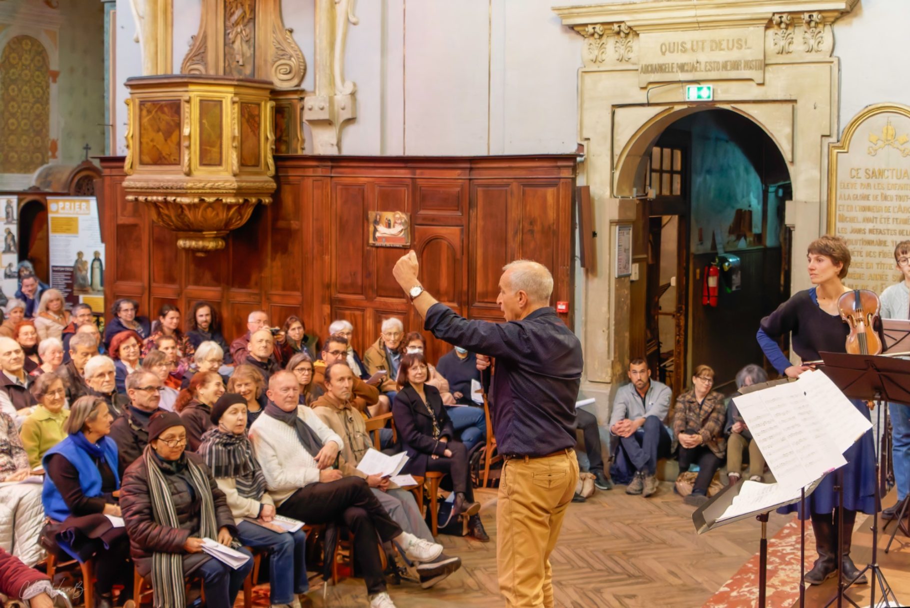 Arrivée et installation des musiciens, des choristes et du public