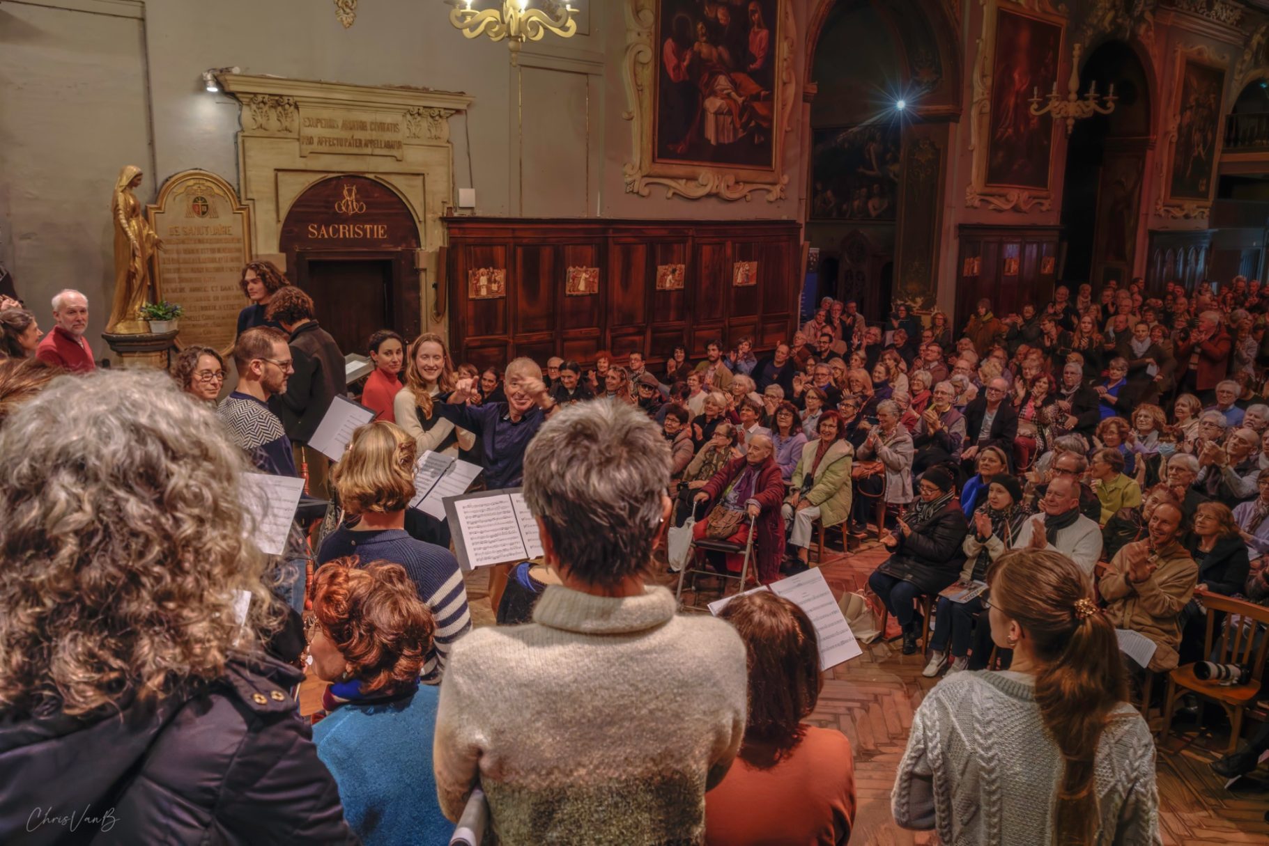 Une heure avant l'interprétation, les musiciens , les choristes, le chef et le public s'installent dans la bonne humeur.