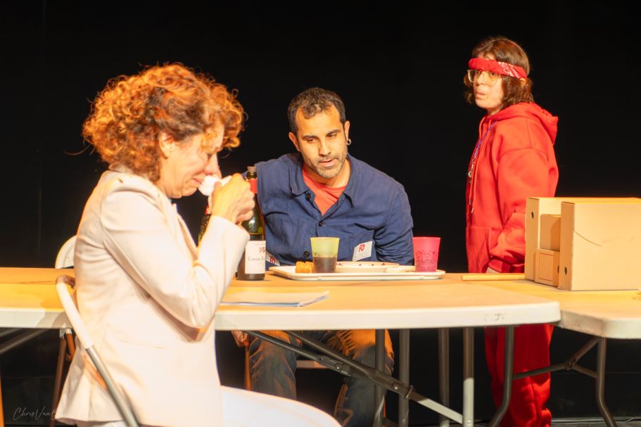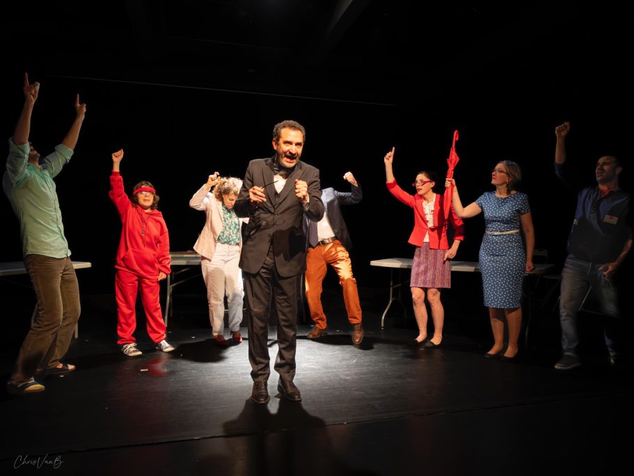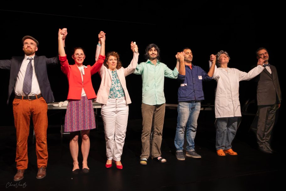 à la fête de fin d’année… Les comédiens campent des caricatures